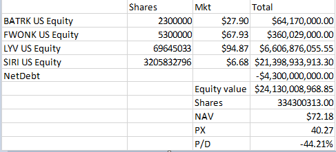 LSXMA/B/K is a tracking entity of the Liberty Media Corporation that has attributed the following liquid, listed assets:
